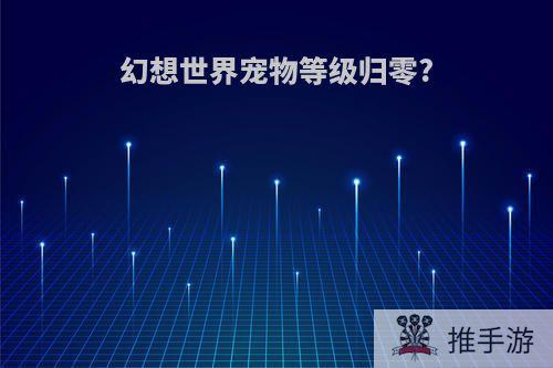 幻想世界宠物等级归零?(幻想世界宠物等级归零在哪)